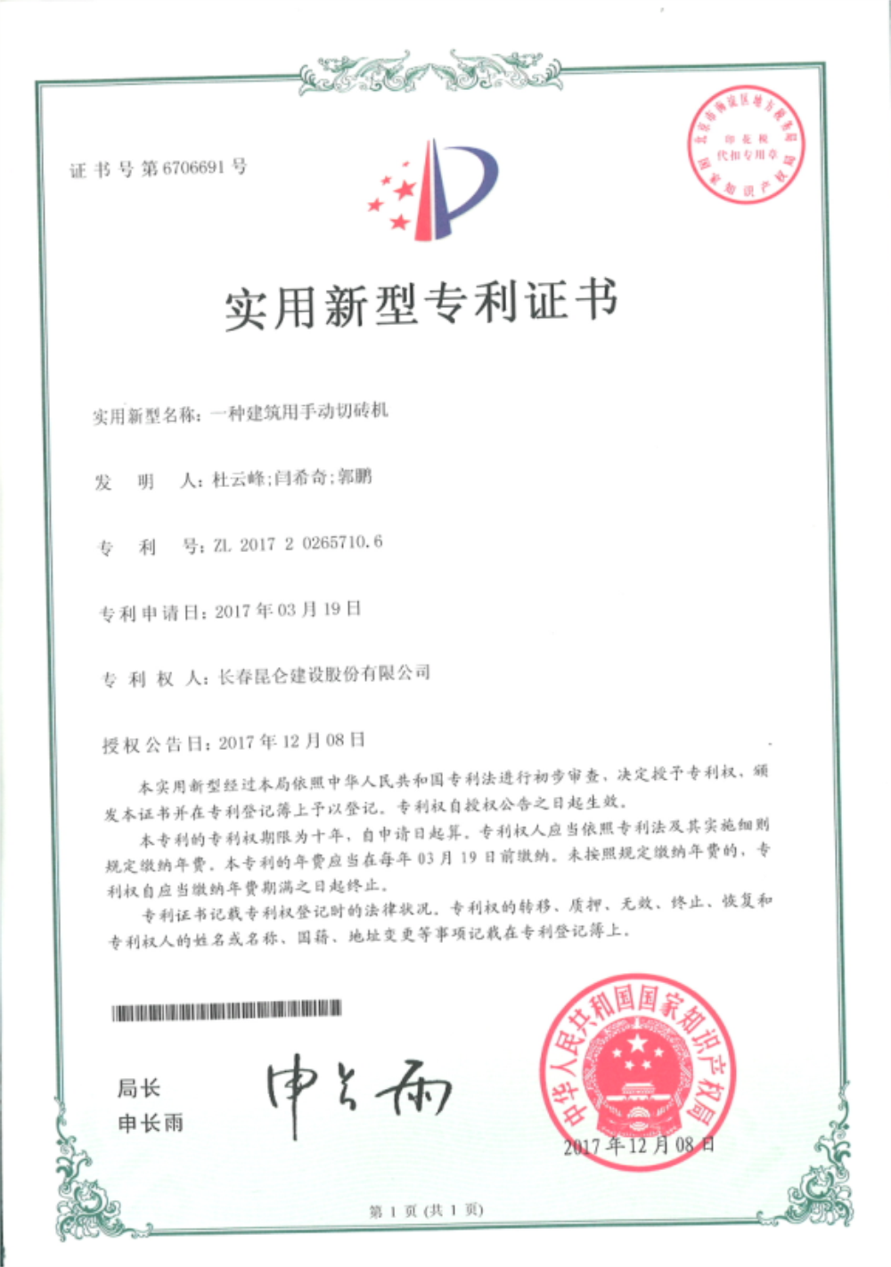 專利證書 >